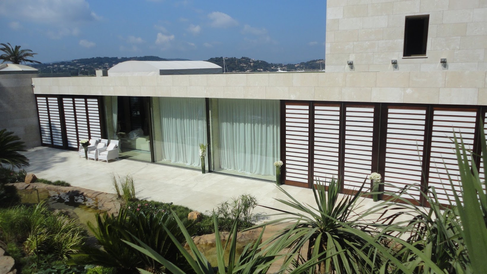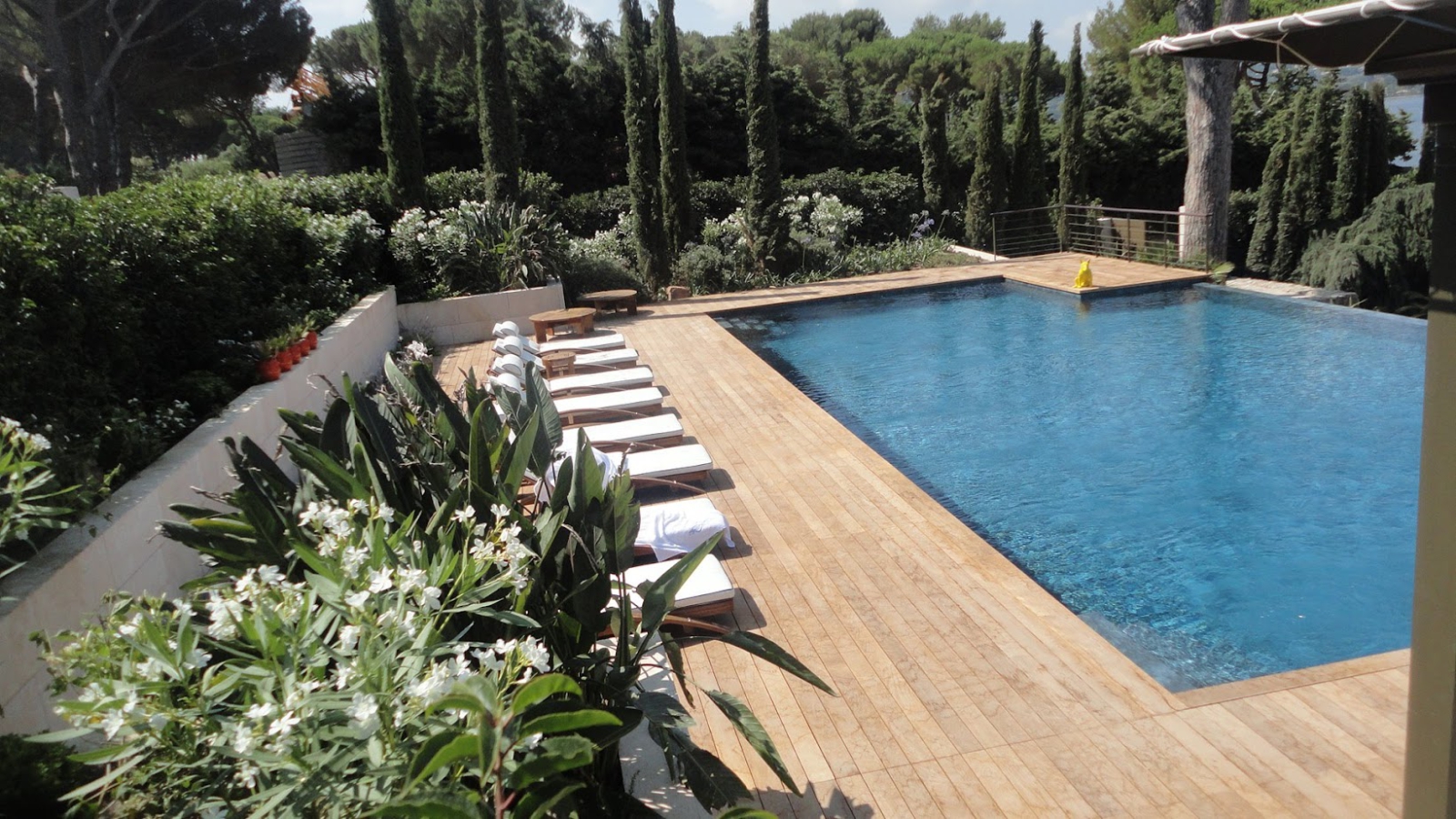 Nous créons également vos aménagements extérieurs : decks de piscine, terrasses, pergolas, meubles extérieurs et pool-houses, conçus pour résister aux conditions du littoral tropézien et s’intégrer harmonieusement à votre propriété.