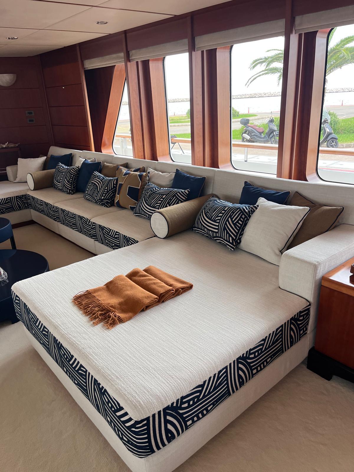 En complément de ces travaux d’agencement en bois, Gordon & Gaia vient parfaire chaque projet grâce à son expertise en tissu, cuir, sellerie, tapisserie, moquette et finitions textiles. Cette synergie entre nos deux maisons nous permet de proposer des projets entièrement clés en main, allant de la conception du mobilier à la rénovation complète de l’intérieur et de l’extérieur du yacht.
